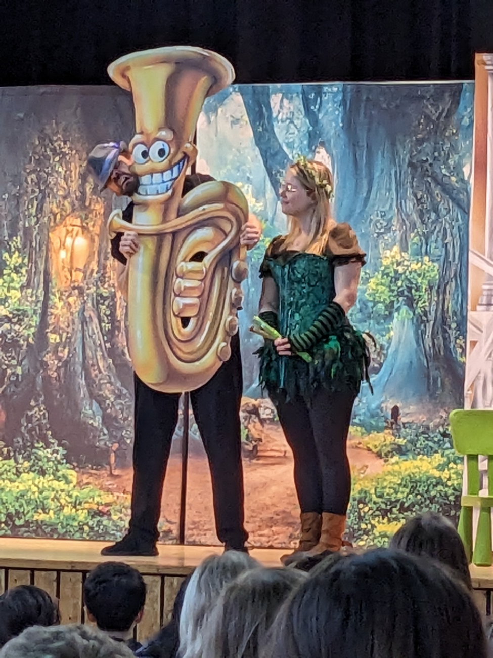 Mit großer Spannung, aber auch mit viel Freude, Lachen und Mitsingen verfolgten die Kinder, wie Waldkobold Bella es mit Hilfe von verschiedenen Opernfiguren und der Zauberflöte schaffte, die zerstrittenen Orchesterinstrumente wieder zusammenzuführen und das Orchester zu retten. Mit der „Fliegenden Holländerin“ als „Lehrerin“/ Dirigentin können die Opernsängerinnen und Opernsänger ab sofort wieder mit den Instrumenten singen und die Opernwelt ist wieder lebendig!